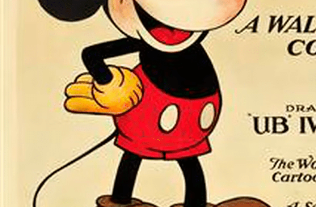 A 2012 Reuters article dates this poster, depicting the mouse in his red shorts, and touting the brand-new character as “The World’s Funniest Cartoon Character,” at 1928. It sold at that time for $100,000.