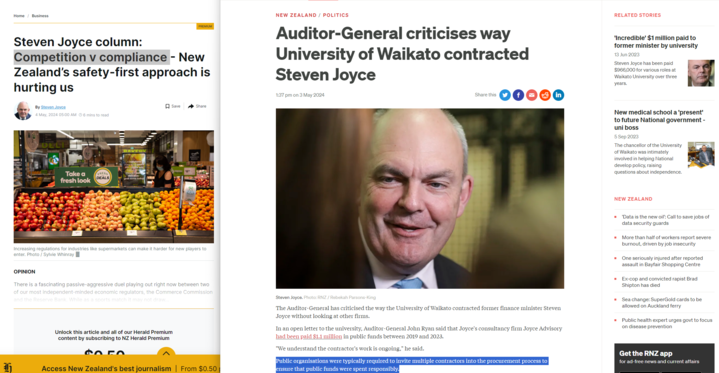 The chutzpah… one day get pinged by the auditor general for a shonky no-bid $1M contract and then the next day lecturer us on how we’re not doing competition right.